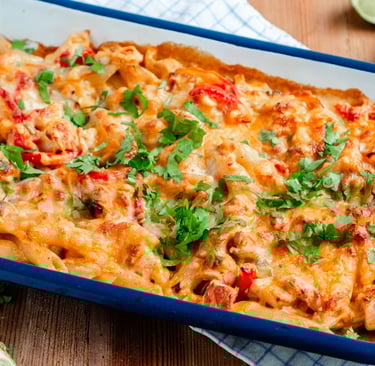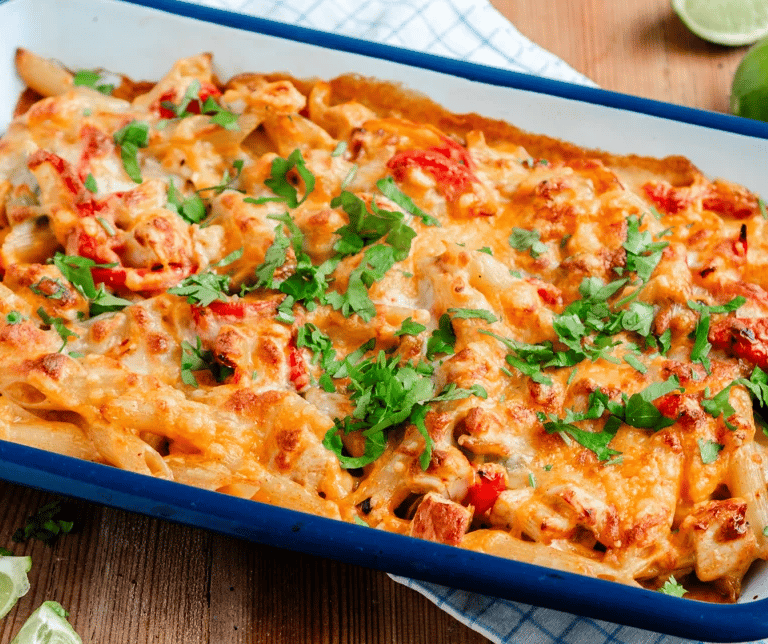 10. تخبز الصينية فرن مسخن مسبقًا على 180°م حتى تذوب الجبنة ويتحول لون الوجه إلى الذهبي (20–25 دقيقة)